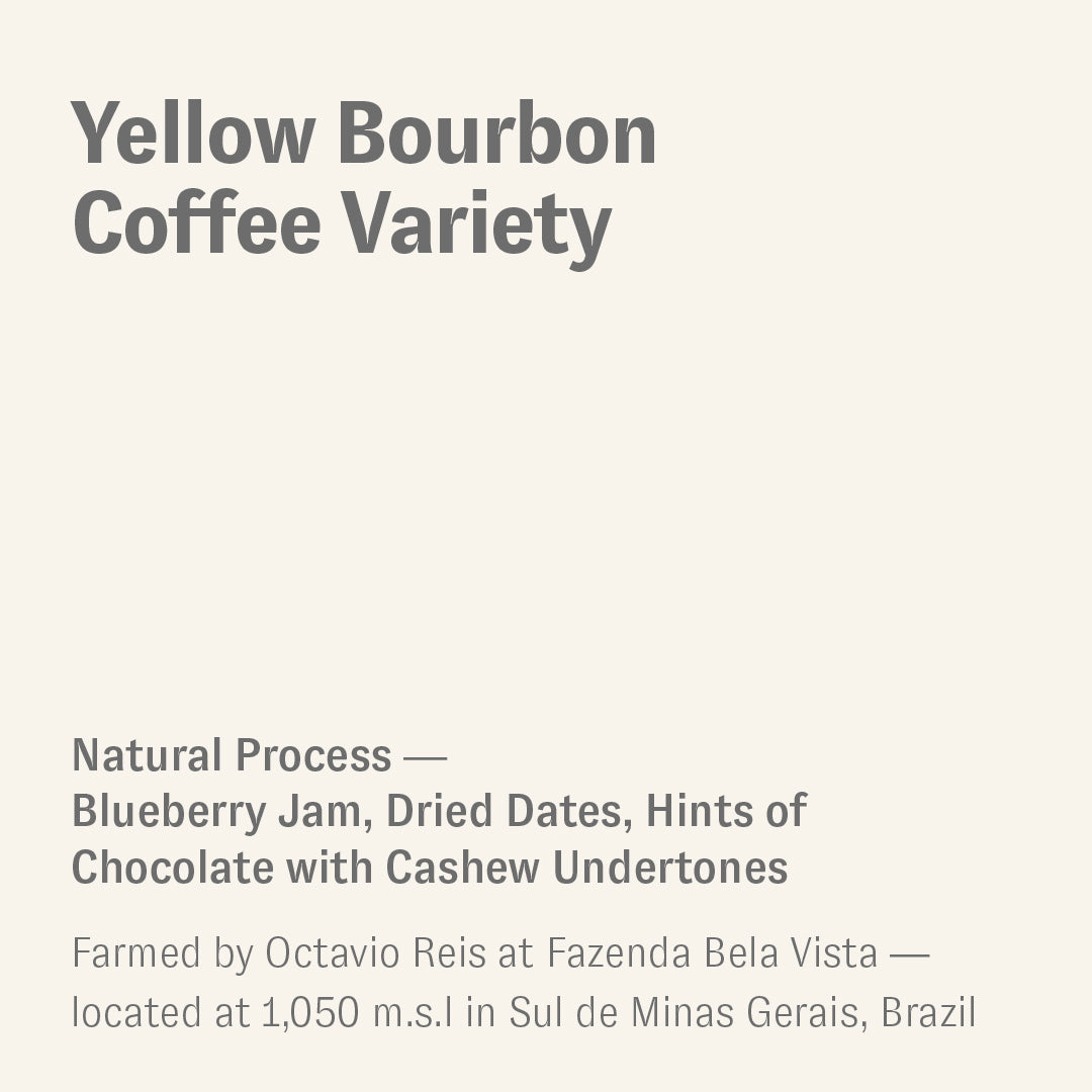 Light Roasted Yellow Bourbon Coffee Variety Farmed by Octavio Reis at Fazenda Bela Vista