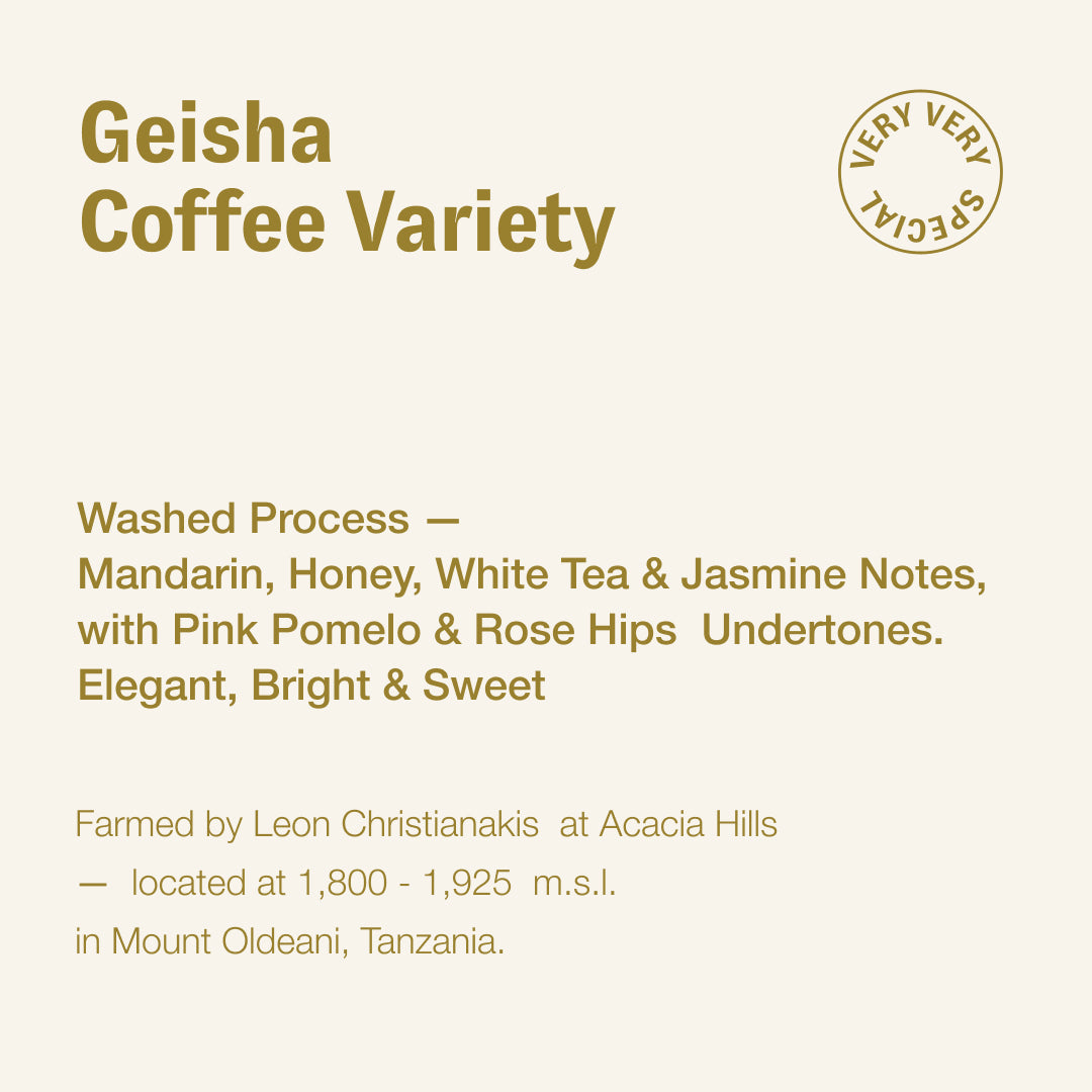 Nestled on the slopes of Mount Oldeani in the Karatu district of northern Tanzania, Acacia Hills is celebrated for its exquisite Geisha coffee. Situated near the iconic Ngorongoro Crater and Serengeti National Park within the Arusha region, this estate benefits from an altitude of 1,800 to 1,925 meters and a microclimate perfectly attuned to cultivating the Geisha variety. Under the stewardship of Leon and Aideen Christianakis, the farm employs sustainable practices and meticulous processing methods, ensuring a coffee of extraordinary refinement and distinctive character.