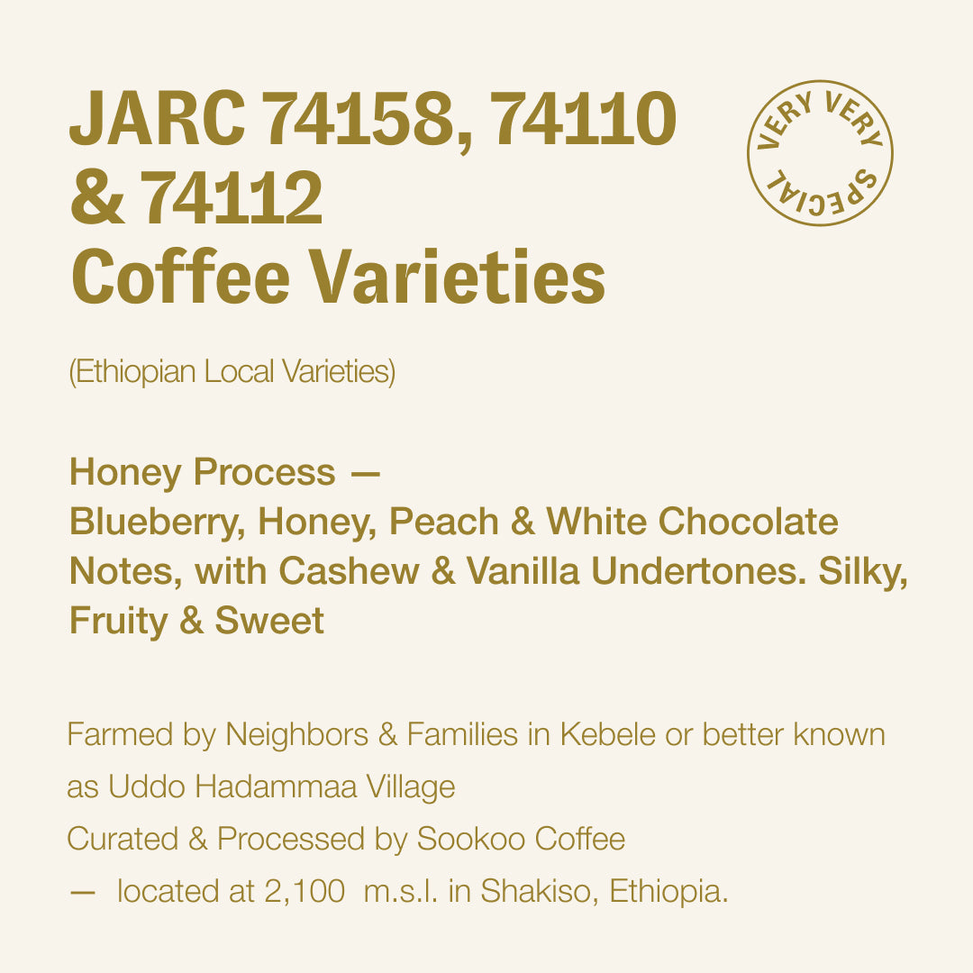 Light Roasted JARC 74158, 74110 & 74112 coffee varieties (Ethiopian Local Varieties), Farmed by Neighbours & Families in Kebele or better known as Uddo Hadammaa Village